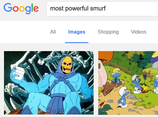 now this right here is good shit. the unexpectedness of skeletor. the deadpan reaction. why this person was googling “most powerful smurf.” the fact that they did this at 3 in the morning. good post, quality post